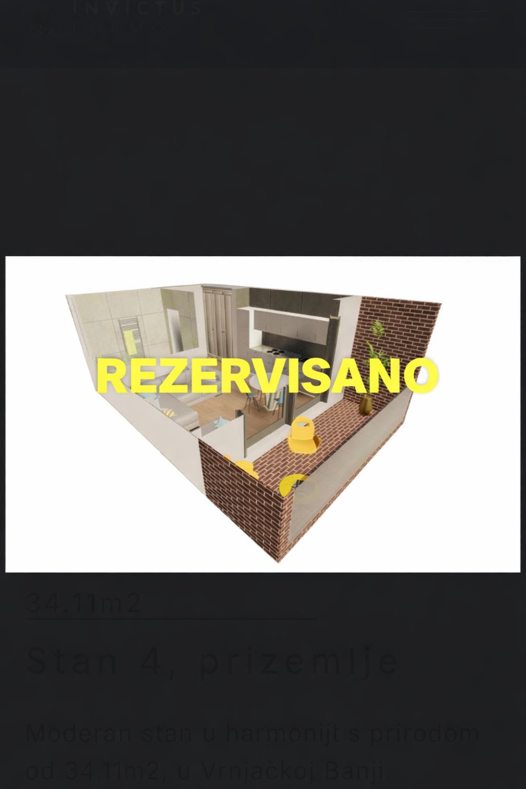 The Invictus residential complex represents a modern style of housing, in a natural environment as the latest trend in the world. The apartments are comfortable with enough natural light, a spacious living room, a kitchen and a terrace with a view of the landscaped yard and the surrounding greenery.